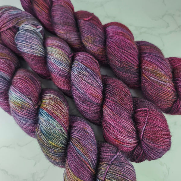 Dream BFL Sock is our toothy 80% Blue Faced Leicester, 20% Nylon base which takes dye beautifully and plumps up a dream once washed. 365m per 100g skein. Fantastic for socks, sweaters and accessories.